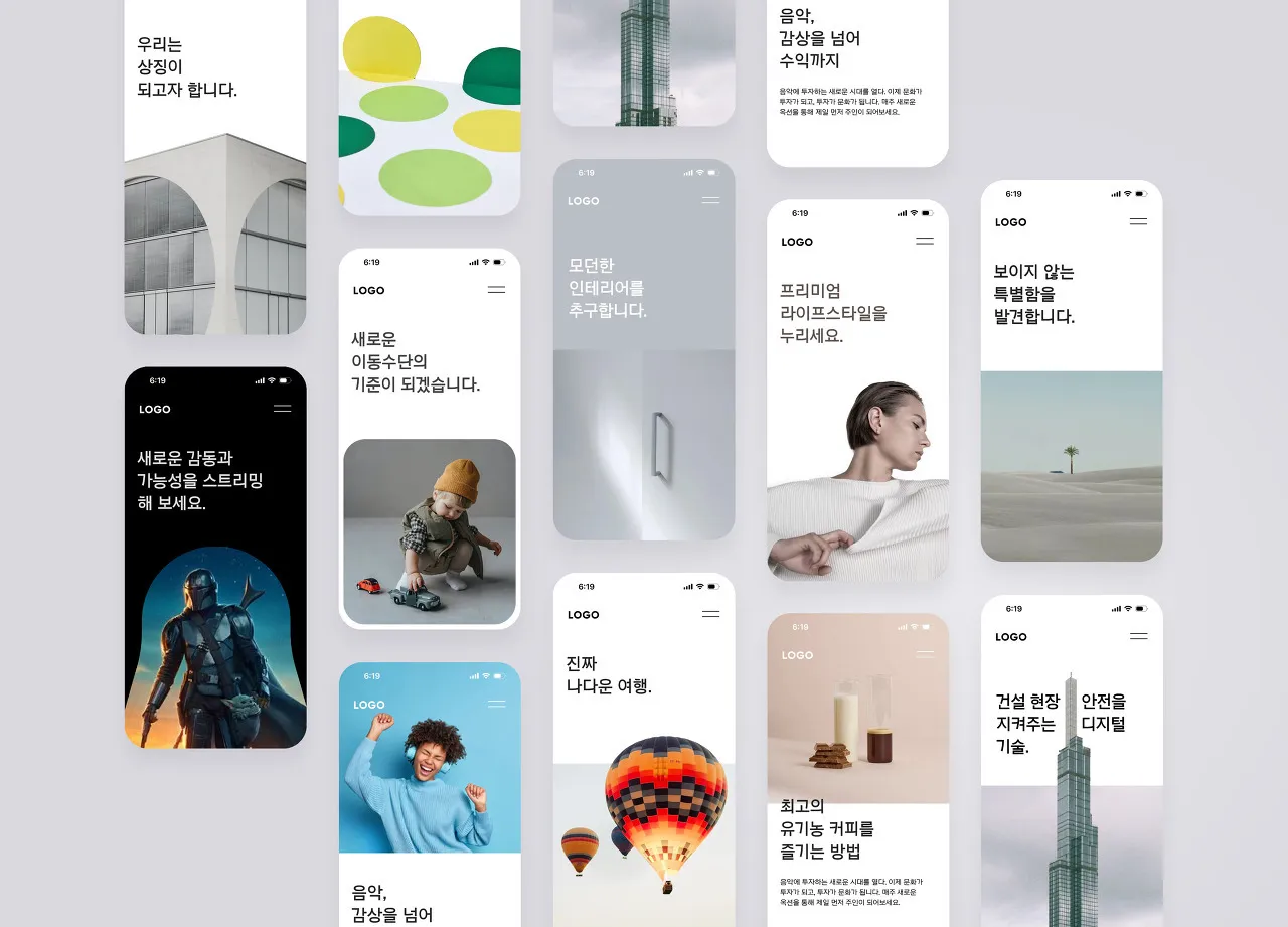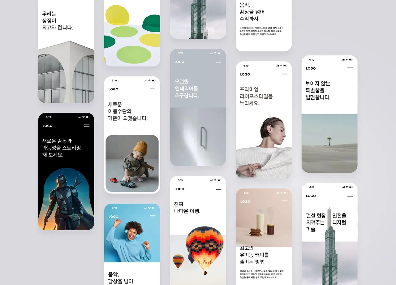 1. 글과 이미지를 균등하게 배치해 보기 2. 딤드(Dimmed) 이미지와 글 레이어드 3. 이미지만으