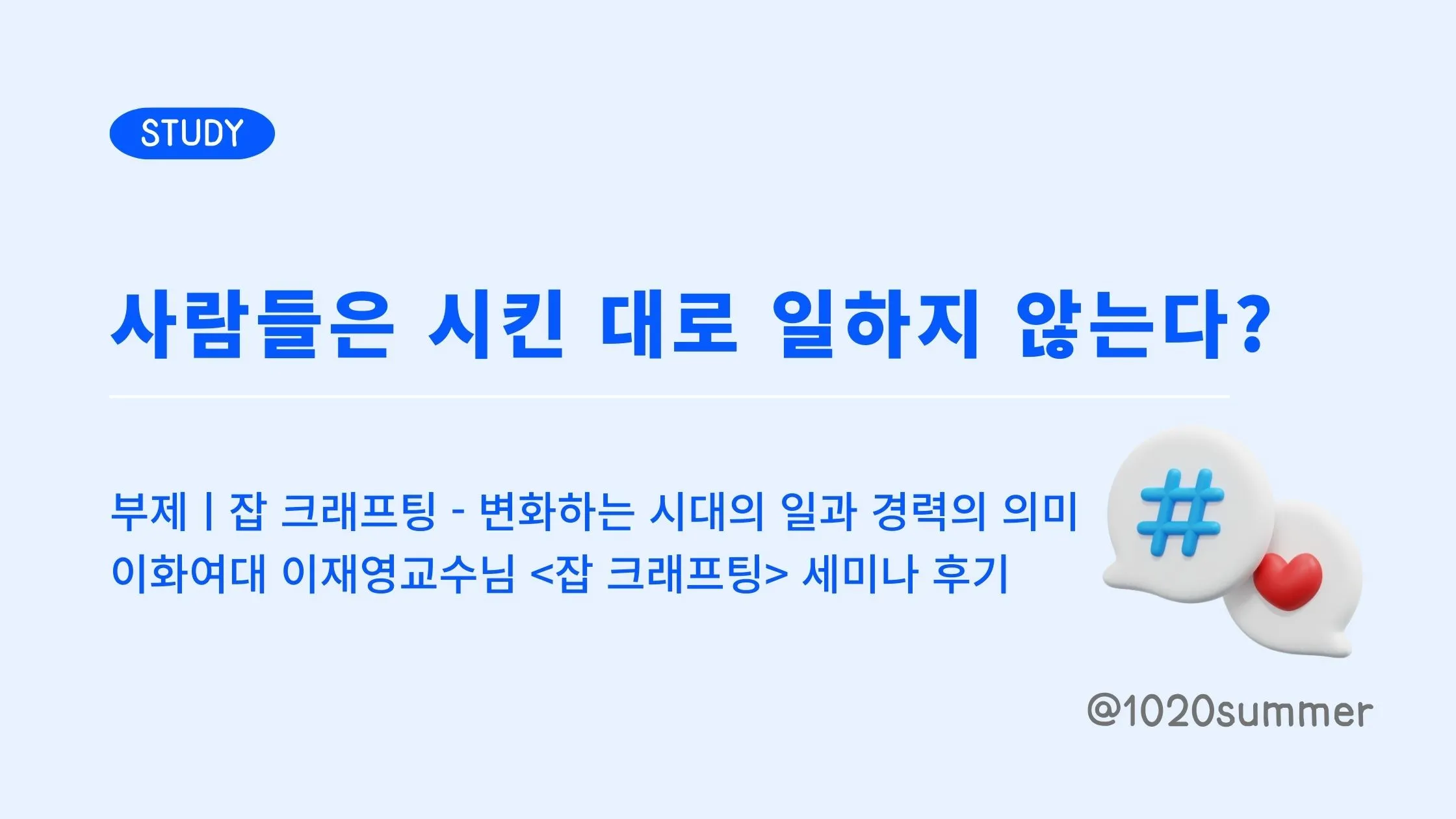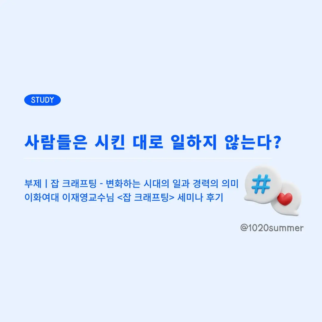 최근 원티드에서 이화여대 이재영 교수님께서 진행하신 <잡 크래프팅 세미나>에서 일과 경력의 의미, 그리고 조직이 해야 되는 역할에 대해 깊이 생각할 시간을 가졌습니다. 일과 경력에 대한 패러다임이 변화하며, 한 직장에서 경력연차가 쌓여 숙련도를 높이는 것만으로는 커리어를 이어가기 어려운 시대. 이에 대한 해답이 될 수 있는 "잡 크래프팅"에 대해 공유해