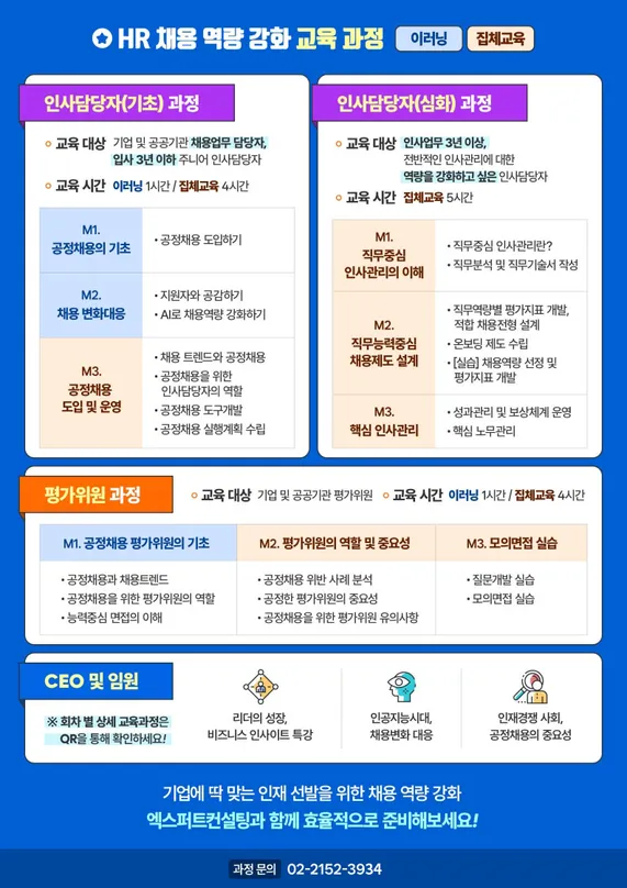● 프로그램 내용 - 공정채용 기초 및 채용 변화 대응 / 공정채용 도입 및 운영 / 직무중심 인사관리와 채용제