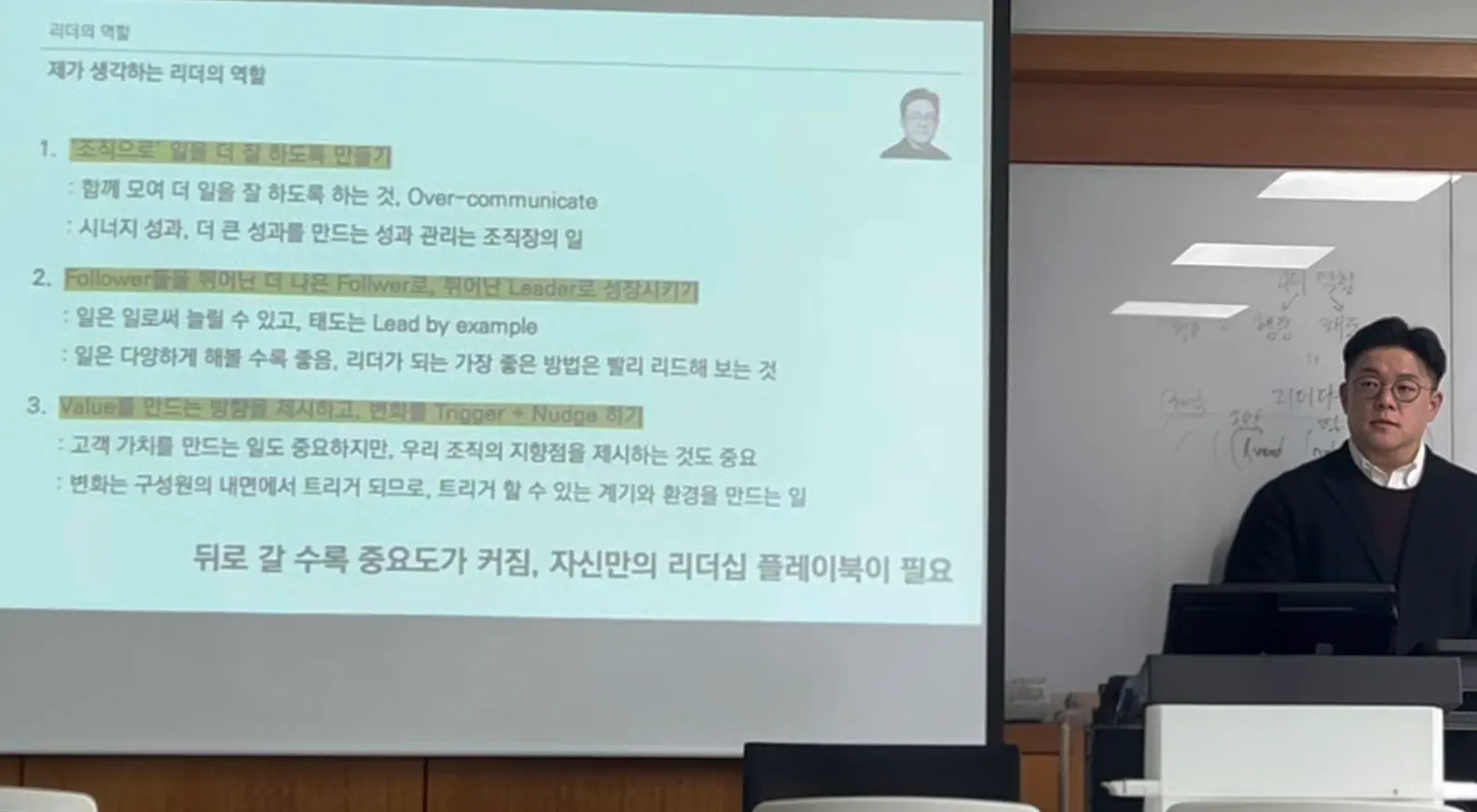 요즘은 자기 생각만큼 움직여주지 않는 후배들을 보며 답답함을 토로하셨죠.